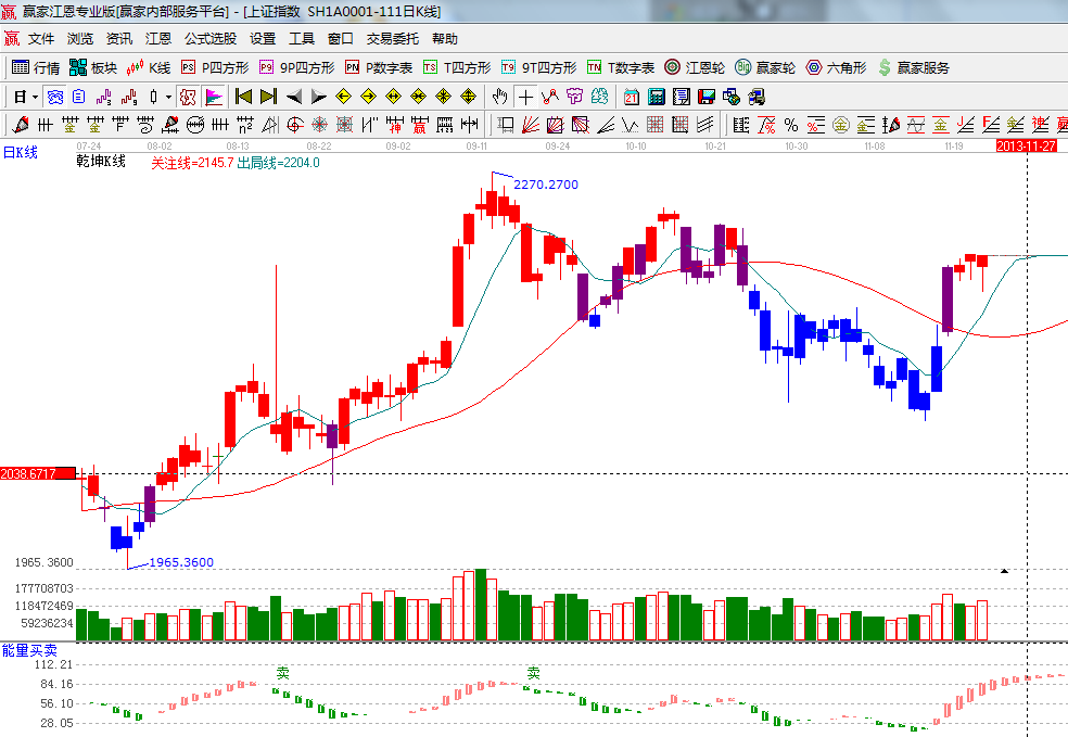 ★依據(jù)贏家江恩系統(tǒng)能量買賣提示:多方量能紅色柱子延伸,繼續(xù)看多;
