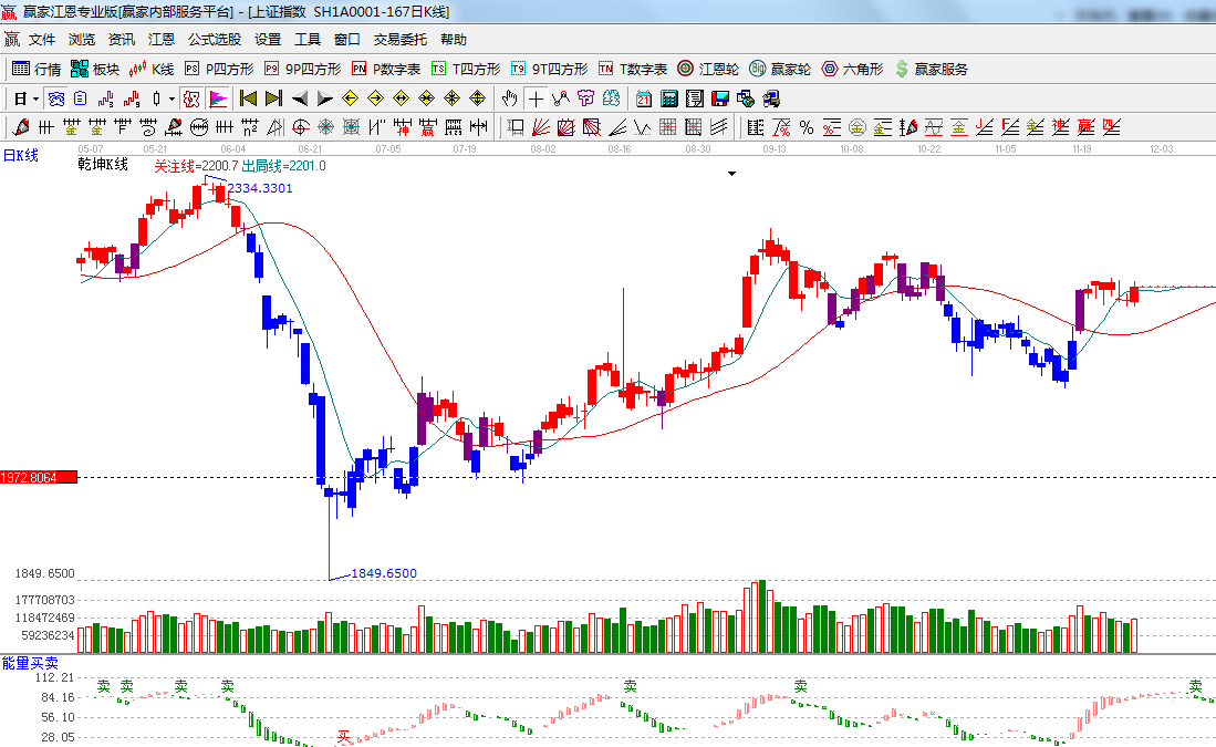 ★依據(jù)贏家江恩系統(tǒng)能量買賣提示:多方量能紅色柱子有所縮短,注意觀察盤中量能變化;