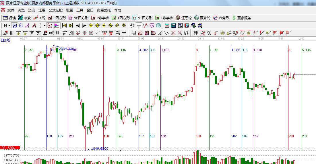 ★依據(jù)贏家江恩系統(tǒng)黃金時間周期線提示:日線時間窗為12月3號;