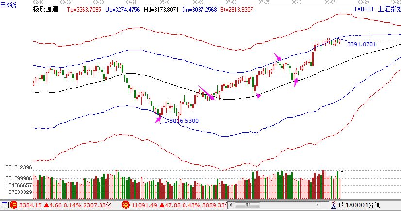 【贏家江恩點評:極反通道工具可幫助用戶解決大盤或個股趨勢判斷、價格買賣點,在日內(nèi)差價高拋低吸方面更能提示其優(yōu)勢?!?/strong>