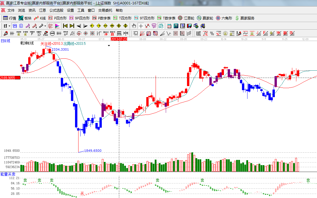 ★依據(jù)贏家江恩系統(tǒng)能量買賣提示:多方量能紅色柱子縮短,量能不能放大謹(jǐn)慎;