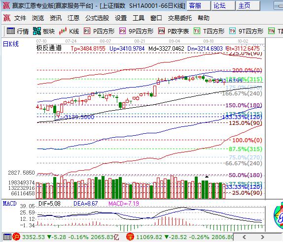 上周五滬市低開(kāi)震蕩縮量小跌收長(zhǎng)下影,深成指和中小創(chuàng)均有不同下跌,但跌幅相對(duì)較小。板塊方面,家電、保險(xiǎn)、銀行和釀酒等板塊逆市上漲,有色、鋼鐵和化工領(lǐng)跌;題材方面,5G和次新表現(xiàn)強(qiáng)勢(shì),軟件、石墨烯、互聯(lián)網(wǎng)金融和雄安表現(xiàn)較弱,芯片、新能源汽車(chē)上漲分化,個(gè)股跌多漲少成交量萎縮。技術(shù)方面,滬指日K線逐漸向極反通道生命線靠攏,下方缺口僅剩3個(gè)點(diǎn)未回補(bǔ),長(zhǎng)遠(yuǎn)看回補(bǔ)缺口回踩生命線對(duì)未來(lái)上漲不留下心理隱患,短周期15、30、60在生命線下弱勢(shì)運(yùn)行,120分鐘按預(yù)期回踩,江恩百分比270度是3325點(diǎn),基本于日線極反通道生命線在同一區(qū)域,本周是國(guó)慶長(zhǎng)假最后一個(gè)交易周,資金會(huì)相對(duì)規(guī)避,如周中有下探從中長(zhǎng)線角度則是回補(bǔ)9月初減倉(cāng)籌碼的機(jī)會(huì),波段倉(cāng)位控制在4成,短線倉(cāng)2成,3345、3330為日內(nèi)支撐,3365、3370為日內(nèi)壓力。僅供參考,不構(gòu)成任何投資建議。