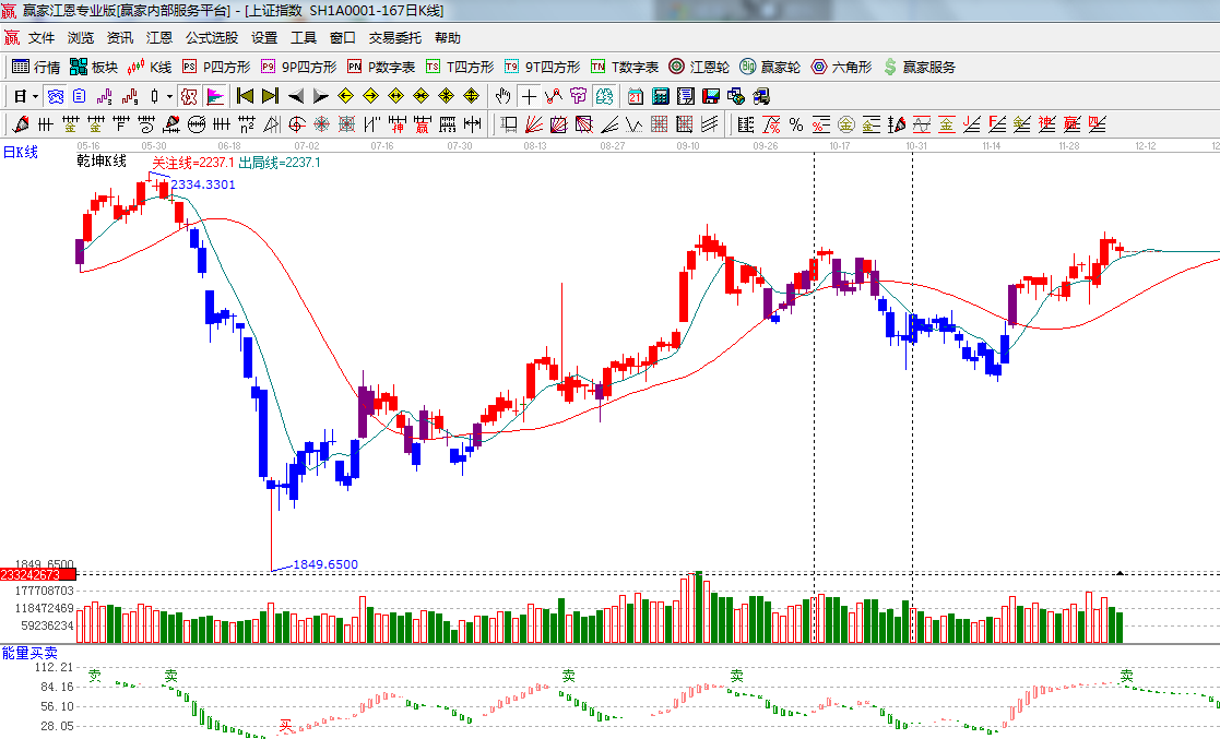 ★依據(jù)贏家江恩系統(tǒng)乾坤K線提示: K線回踩短期出局線,出局線運行短線、波段看多,K線在出局線下運行則是短線看空波段繼續(xù)看多;