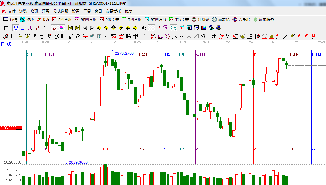 ★依據(jù)贏家江恩系統(tǒng)黃金時間周期線提示:下周一9號為時間點,注意K線形態(tài);