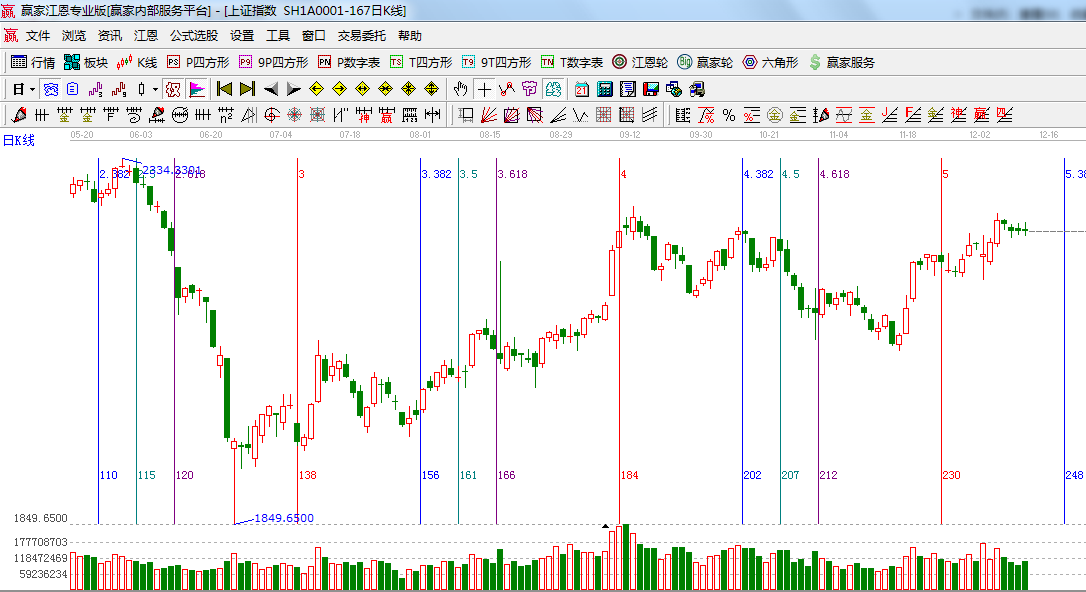 ★依據(jù)贏家江恩系統(tǒng)黃金時(shí)間周期線提示:17號為黃金分割的0.382的位置,重點(diǎn)觀察日線k線形態(tài);