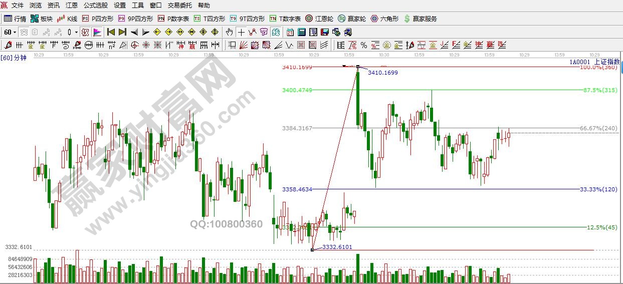 ☆依據(jù)贏家江恩理論系統(tǒng)江恩波段百分比提示:滬指短周期阻力3384點(diǎn),支撐是3357點(diǎn),以及45度線3340點(diǎn)附近?! ?/p>
