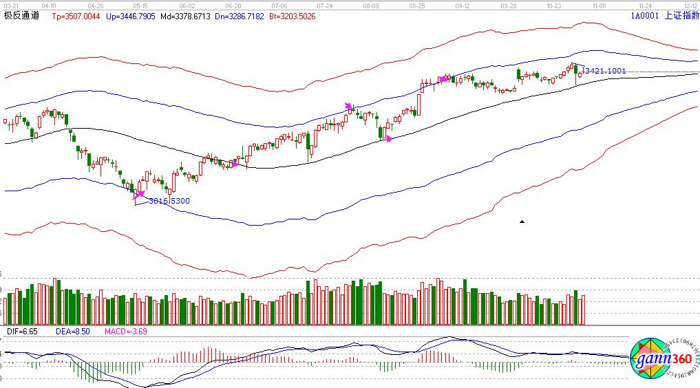 【贏家江恩點評:極反通道工具可幫助用戶解決大盤或個股趨勢判斷、價格買賣點,在日內(nèi)差價高拋低吸方面更能提示其優(yōu)勢?!?/strong>