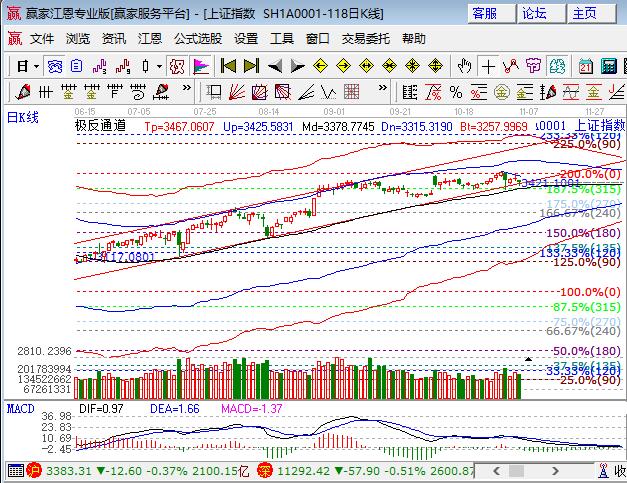 咨詢:13333833889周四幾大指數(shù)低開低走再度調(diào)整,滬指等待考驗(yàn)日線生命線,深成指走在邁向生命線的路上,創(chuàng)業(yè)板指則大跌1%跌破生命線。板塊方面,釀酒、券商、家電、煤炭、保險和醫(yī)藥等成為幾個為數(shù)不多的紅盤板塊;題材方面,僅次新、填權(quán)、人工智能和基因等局部表現(xiàn),特斯拉、OLED、石墨烯、環(huán)保和蘋果概念領(lǐng)跌,個股下跌居多,跌幅4%以上的個股150家,成交量較前日萎縮。技術(shù)方面,受尾盤權(quán)重銀行、石油、保險回抽,日線試踩江恩百分比315度3370點(diǎn)后拉回,對應(yīng)的短周期15、30、60分鐘均在極反通道生命線下弱勢區(qū)域,昨日早盤開盤群中分析,滬指破60分鐘生命線則盤面有強(qiáng)勢震蕩轉(zhuǎn)變成弱勢震蕩,日線極反通道生命線的考驗(yàn)更加嚴(yán)峻,同時已提出轉(zhuǎn)為防守策略,波段倉位4成,短線降低1成至2成,3370、3360為日內(nèi)支撐,3394、3400為日內(nèi)壓力。僅供參考,不構(gòu)成任何投資建議。