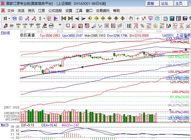 滬指周二高開(kāi)高走延續(xù)震蕩上漲態(tài)勢(shì),幾大指數(shù)全線上漲,創(chuàng)業(yè)板相對(duì)較弱,全天以權(quán)重主導(dǎo),尾盤(pán)題材活躍。板塊方面,石油、券商、保險(xiǎn)和鋼鐵等領(lǐng)漲,釀酒、醫(yī)藥下跌;題材方面,360、人工智能、芯片和油氣概念領(lǐng)漲題材,自由港、OLED和生物疫苗概念較弱,個(gè)股上漲居多成交量放大。技術(shù)方面,滬指日線兩度盤(pán)中下破生命線后被拉起,隨著橫盤(pán)震蕩時(shí)間的延伸,極反通道強(qiáng)勢(shì)外軌線已從10月27號(hào)的3440上移到目前的3465點(diǎn),短周期15、30、60分鐘再度收復(fù)生命線,弱勢(shì)震蕩轉(zhuǎn)化為強(qiáng)勢(shì)震蕩,15分鐘即將受到上方外軌線壓力,預(yù)計(jì)延續(xù)強(qiáng)勢(shì)震蕩走勢(shì),波段倉(cāng)位增長(zhǎng)1成為5成,短線保持2成,3396、3390為日內(nèi)支撐,3424、3438為日內(nèi)壓力。僅供參考,不構(gòu)成任何投資建議。