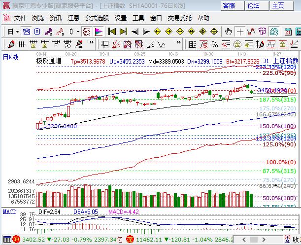 周三大盤低開低走延續(xù)跌勢下跌0.79%,相對滬指,深市幾大指數跌幅均大于1%以上,創(chuàng)業(yè)板領跌。板塊方面,釀酒、家電和醫(yī)藥成為僅有的幾個紅盤板塊,保險、有色、石油和鋼鐵等板塊領跌,其中保險、石油為主要砸盤主角;題材方面,僅5G和個別開板新股強勢,鋰電、特斯拉和充電樁等新能源汽車產業(yè)鏈領跌,人工智能、芯片、蘋果和國產軟件科技題蔡跌幅靠前,個股下跌居多成交量連續(xù)三天萎縮。技術方面,滬指日線二連陰收盤失守江恩百分比零度3420點,短周期15、30、60失守生命線進入弱勢震蕩,依據工具規(guī)則,60分鐘生命線是短期強弱參考線,今日繼續(xù)關注60分鐘生命線爭奪,下方日線生命線是3382點,日線生命線不破波段倉保持在5成,短線保持2成,3389、3382為日內支撐,3412、3416為日內壓力。僅供參考,不構成任何投資建議。