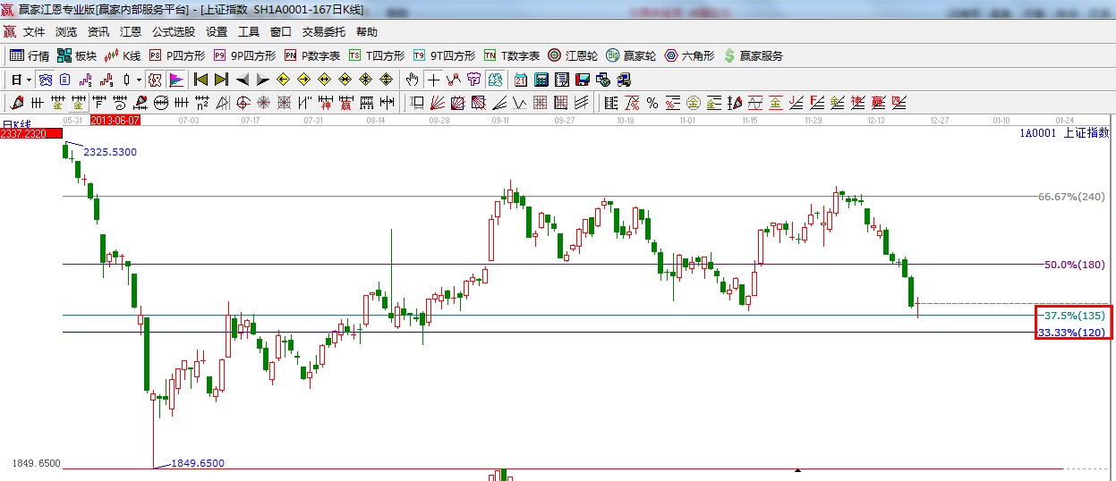 ★依據(jù)贏家江恩系統(tǒng)波段百分比提示:1849點(diǎn)與2444點(diǎn)做分析,下方135度是2072點(diǎn)、120度是2040附近;