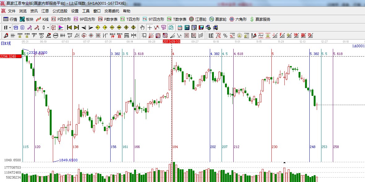 ★依據(jù)贏家江恩系統(tǒng)黃金時(shí)間周期線提示:本周三25號(hào)為日線黃金分割的0.5位置;