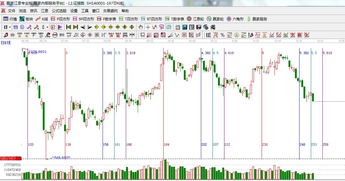 ★依據(jù)贏家江恩系統(tǒng)波段百分比提示:1849點與2444點做分析,135度是2072點、120度是2045附近;