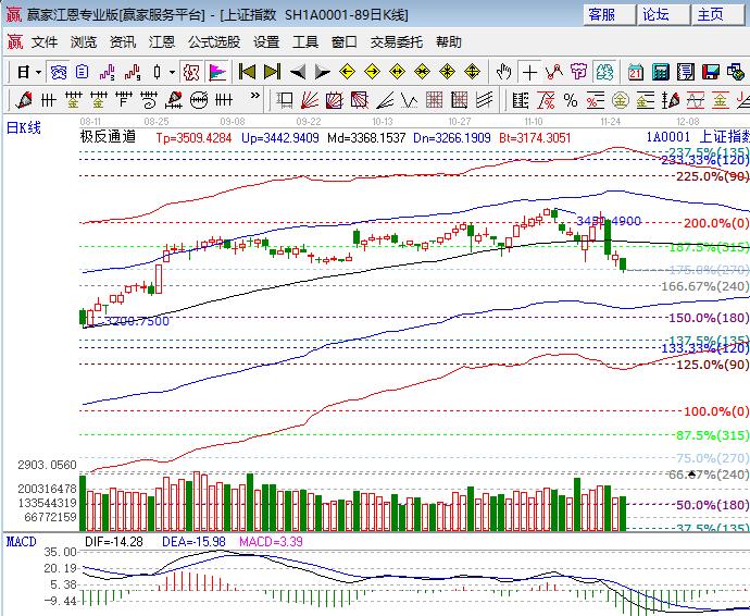 滬指周一低開低走下跌1%,深成指和中小創(chuàng)大跌2%,幾大指數(shù)都是中陰線繼續(xù)創(chuàng)新低。板塊方面,化纖、鋼鐵和券商成為僅有幾個紅盤板塊,權(quán)重出手護(hù)盤,讓個股下行更加慘烈;題材方面,雄安及超跌股局部表現(xiàn),5G、芯片、OLED、特斯拉、鋰電、次新和人工智能等領(lǐng)跌且都是大跌;個股下跌居多,自然漲停10家,跌停近40家。技術(shù)方面,滬指日K線運(yùn)行到生命線與弱勢外軌線懸空位置,江恩百分比270度和240度分析對應(yīng)著3320、3287點,指數(shù)進(jìn)入這個區(qū)間將會形成震蕩,今日早盤最后一個小時是分鐘圖時間點,同時短周期15分鐘出現(xiàn)底背離,觀察兩者合力所醞釀的反抽力度。創(chuàng)業(yè)板再下行將同樣進(jìn)入震蕩帶,對快速的下行進(jìn)行短期修復(fù)。波段倉保持在4成(中長線倉位),短線休息,3300、3290為日內(nèi)支撐,3335、3340為日內(nèi)壓力。僅供參考,不構(gòu)成任何投資建議。