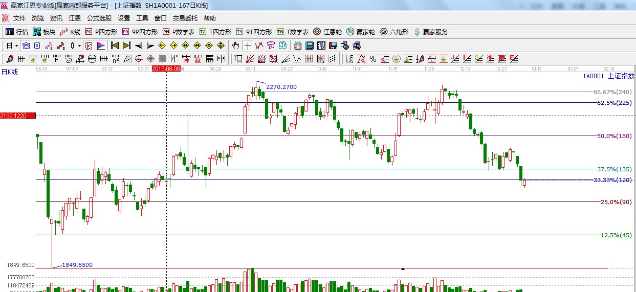 ★依據(jù)贏家江恩系統(tǒng)波段百分比提示:1849點(diǎn)與2444點(diǎn)做分析,135度是2072點(diǎn)、120度是2048附近,90度為2000點(diǎn);
