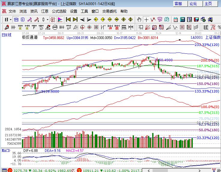 周三滬指低開低走放量大跌近1%,呈現(xiàn)陰包陽走勢,砸盤主力是除石油外的權(quán)重的白馬股,深成指和中小板大跌1%以上。板塊方面,煤炭、有色板塊領(lǐng)漲,權(quán)重僅石油上漲,保險、家電、釀酒、醫(yī)藥、券商領(lǐng)跌;題材方面,新能源汽車、次新領(lǐng)漲概念股,天然氣、太陽能、芯片、上海自由港和5G概念領(lǐng)跌,個股下跌居多成交量持續(xù)放大。技術(shù)方面,大盤日線收盤破江恩百分比240度依然在箱體內(nèi)震蕩,225度3272向下則180度位置,市場保持箱體震蕩或向下創(chuàng)新高的概率各占一半,短周期15、30、60分鐘均跌破生命線進(jìn)入弱勢區(qū)域,分鐘圖下午第一個小時為時間點。上證50收盤破日線生命線2850點,此位置不能收復(fù)則帶領(lǐng)白馬股向下尋找大均線支撐。市場調(diào)整空間、時間在周六課中已提到這里不在贅述。操作策略上波段4成倉持股不動,3264、3244為日內(nèi)支撐,3284、3294為日內(nèi)壓力。僅供參考,不構(gòu)成任何投資建議。