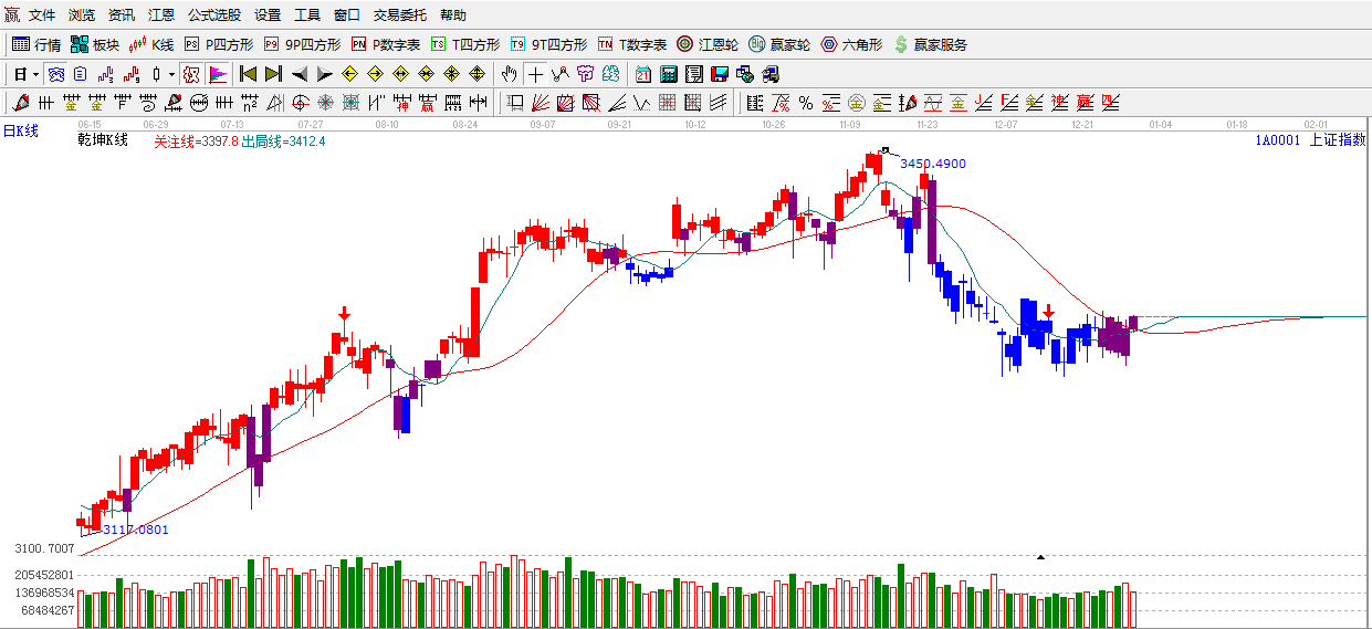 江恩看盤綜述:依據(jù)贏家江恩技術(shù)工具分析得出:周五,指數(shù)震蕩走高,尾盤收復(fù)3305點(diǎn)關(guān)鍵位置,是一個好的信號,但美中不足的是量能同比萎縮,接下來繼續(xù)關(guān)注3305點(diǎn)突破的有效性。如新年第一個交易日,如能繼續(xù)保持在3305點(diǎn)之上,指數(shù)有望繼續(xù)看高日線生命線3342點(diǎn)附近。不然繼續(xù)保持謹(jǐn)慎,操作上,繼續(xù)控制倉位的前提下,重點(diǎn)關(guān)注成長性良好有業(yè)績支撐的小盤股。