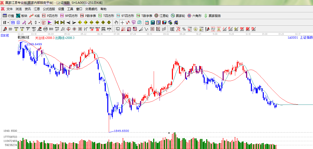 ☆依據(jù)贏家江恩系統(tǒng)極反通道提示:指數(shù)在弱勢(shì)下軌線支撐位置,如期拉升小陽(yáng)線,但反彈量能不足,等待量能的恢復(fù)。