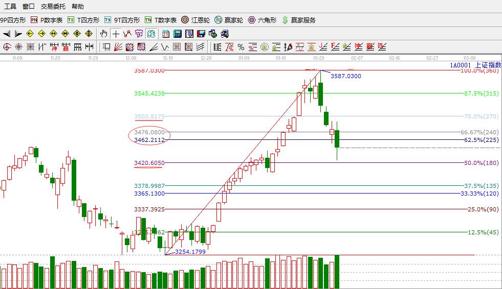 江恩看盤(pán)綜述:依據(jù)贏家江恩技術(shù)工具分析得出:周四,滬深指數(shù)繼續(xù)大幅殺跌,各短周期走勢(shì)均觸及藍(lán)色下軌線后,承接資金開(kāi)始小幅涌現(xiàn),市場(chǎng)轉(zhuǎn)入弱勢(shì)整理。依據(jù)極反通道物極必反規(guī)則,滬深指數(shù)短周期藍(lán)色線支撐附近應(yīng)該有超跌反彈機(jī)會(huì),百分比支撐繼續(xù)關(guān)注180度3420的支撐。短線繼續(xù)耐心等待指數(shù)見(jiàn)底反彈的信號(hào)。反抽阻力關(guān)注225度3462點(diǎn),240度3476點(diǎn)附近,操作上,鑒于近期殺跌的主力都是業(yè)績(jī)或虧損的,所以目標(biāo)可重點(diǎn)關(guān)注業(yè)績(jī)支撐且具有估值優(yōu)勢(shì)的標(biāo)的。