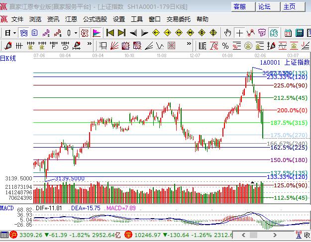 周三大盤高開低走長陰殺跌大跌1.82%,從開盤算下跌有百點,創(chuàng)業(yè)板探低回升上漲近1%。板塊方面,地產(chǎn)、銀行、家電、釀酒、石油、保險、航運等藍籌大跌;鄉(xiāng)村振興、次新和科技類成長股引領題材股行情,跌停停仍有近40家。技術方面,滬指中陰失守極反通道日線生命線,周線生命線是3270附近,短周期15、30、60分鐘均進入極弱通道,7號下午的短期時間今日早盤仍有效,關注江恩百分比225度與240度所構成的支撐帶是否能短期止跌;創(chuàng)業(yè)板預計將圍繞弱勢外軌線震蕩,構造平臺蓄勢;上證50調整看日線生命線與上升級趨勢線位置。短線投機者支撐帶如能止跌可超短輕倉參與,穩(wěn)健波段者休息。長線倉位4成持股不動,3290、3273為日內(nèi)支撐,3335、3340為日內(nèi)壓力。僅供參考,不構成任何投資建議。