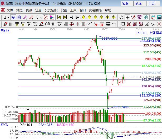 周四幾大指數(shù)低開(kāi)縮量震蕩小漲,主板僅白馬股表現(xiàn),市場(chǎng)熱點(diǎn)依然在題材小票上。板塊方面,地產(chǎn)、保險(xiǎn)漲幅跑贏大盤,銀行、煤炭有色逆勢(shì)下跌;題材方面,雄安、生物科技、 高送轉(zhuǎn)領(lǐng)漲,獨(dú)角獸、工業(yè)互聯(lián)網(wǎng)概念分化,芯片、鋰電走弱,個(gè)股上漲居多成交量持續(xù)萎縮。技術(shù)方面,滬指8號(hào)時(shí)間窗站穩(wěn)江恩百分比震蕩帶,短周期有延續(xù)上攻的勢(shì)頭,日線下個(gè)時(shí)間窗口是14號(hào),日線江恩百分比225度與240度對(duì)應(yīng)的3271-3287點(diǎn)為震蕩支撐帶,上方270度3321點(diǎn)為盤中阻力;創(chuàng)業(yè)板今日回探30分鐘生命線,震蕩不破等待60分鐘生命線上移,同時(shí)日線均線系統(tǒng)也在跟隨,目前已橫盤5天,創(chuàng)業(yè)板時(shí)間窗口為下周初;上證50繼續(xù)圍繞百分比270度2880震蕩,此線站穩(wěn)則上方位置是315度2945附近。最近盤面上,歷史上持續(xù)調(diào)整的股票,股價(jià)打6折、7折、8折的個(gè)股,經(jīng)過(guò)5-10天的小陽(yáng)線緩漲,會(huì)出現(xiàn)一到二根中陽(yáng),這是近兩天盤面其中一個(gè)表象;再者等待科技、工業(yè)互聯(lián)網(wǎng)短期調(diào)整后第二波。今日支撐3271、3262,今日阻力3304、3320,僅供參考,不構(gòu)成任何投資建議。