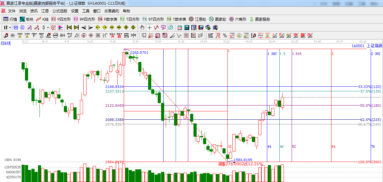 ☆依據(jù)贏家江恩系統(tǒng)黃金時間周期線提示:下一需要留意的時間窗2月24日(黃金時間1.618的時間窗口)