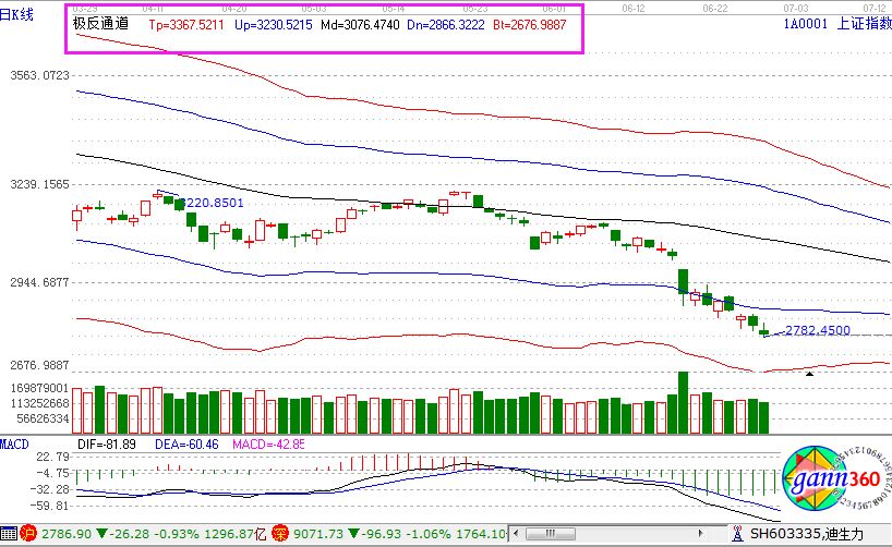 滬指跌0.93%,報收2786點;深成指跌1.06%,報收9071點;創(chuàng)業(yè)板跌0.17%,報收1543點。從盤面上看,證券、石油開采、高送轉(zhuǎn)、5G、景點及旅游、紡織制造等板塊漲幅居前;百度概念、分散染料、互聯(lián)網(wǎng)彩票、農(nóng)業(yè)服務(wù)、養(yǎng)殖業(yè)、獨角獸概念等板塊跌幅居前。滬股通凈流入22億,深股通凈流出13億。相應(yīng)的極反通道指標(biāo)的支撐壓力提示,如下圖所示: