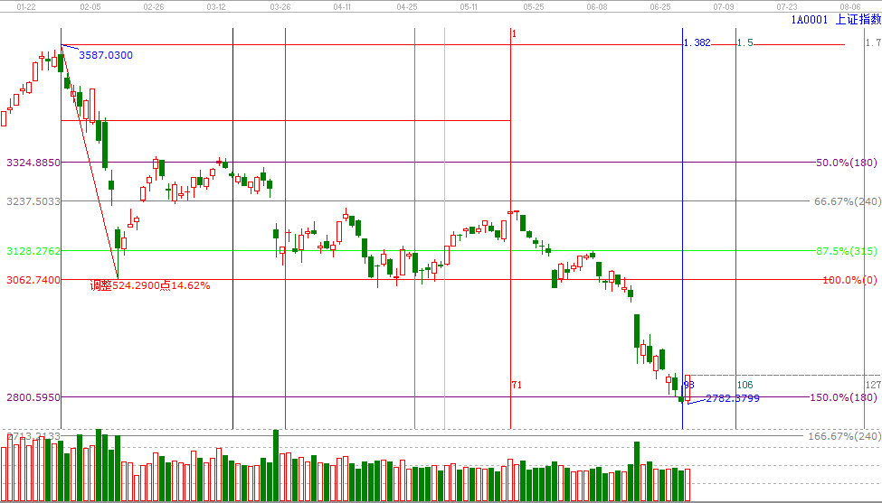 市場已進入中期底部區(qū)域,但底部未探明,左側交易者2800點上下100適量建底倉(2成以內),在沒有底部明確前保持底倉不進行加倉動作,右側交易者空倉休息,等待底部確立(放量陽線)后再進行交易。