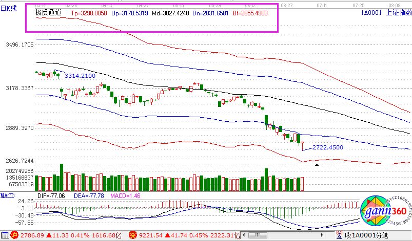 滬指漲0.41%,報2786.89點;深成指漲0.45%,報9221.54點;創(chuàng)業(yè)板指漲1.16%,報1607.12點。從盤面上看,軍工、國產(chǎn)軟件、集成電路、芯片、半導(dǎo)體、5G等板塊漲幅居前;白酒、機(jī)場航運、超級品牌、飲料制造、汽車整車、黃金、豬肉等板塊跌幅居前。滬股通凈流入17億,深股通凈流出12億。相應(yīng)的極反通道指標(biāo)的支撐壓力提示,如下圖所示: