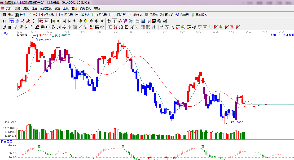★依據(jù)贏家江恩系統(tǒng)乾坤K線提示: 大盤處于紅色可操作區(qū)域,回踩紅色關(guān)注線,此線不破,波段看多。