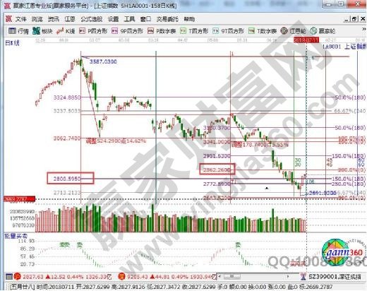★依據(jù)贏家江恩理論系統(tǒng)波段百分比延伸線提示:股價今日回踩確認(rèn)2800支撐后,尾盤再度走強(qiáng),按照規(guī)則反彈空間看高一線至2862。