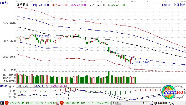 滬指跌1.76%,報(bào)2777點(diǎn);深成指跌1.97%,報(bào)9023點(diǎn);創(chuàng)業(yè)板指跌1.88%,報(bào)1563點(diǎn)。盤(pán)面上看,知識(shí)產(chǎn)權(quán)保護(hù)、網(wǎng)絡(luò)安全、大飛機(jī)、無(wú)人零售、國(guó)產(chǎn)軟件、人臉識(shí)別等板塊跌幅居前。滬股通凈流入2.6億,深股通凈流出3.3億。相應(yīng)的極反通道指標(biāo)的支撐壓力提示,如下圖所示: