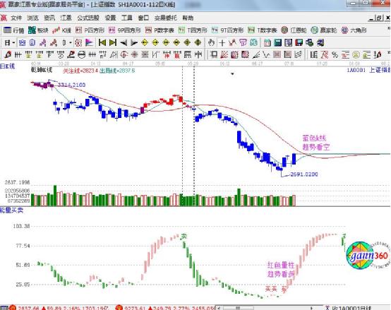 ☆依據(jù)贏家江恩理論系統(tǒng)乾坤K線提示:藍(lán)色K線,波段趨勢(shì)仍為空。