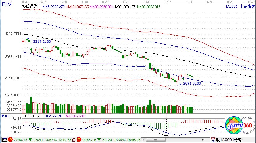滬指跌0.57%,報(bào)收2798點(diǎn);深成指跌0.35%,報(bào)收9285點(diǎn);創(chuàng)業(yè)板漲0.29%,報(bào)收1621點(diǎn)。從板塊漲幅上看,石墨烯、農(nóng)機(jī)、養(yǎng)殖、化工新材料、5G、互聯(lián)網(wǎng)彩票等漲幅居前;鋼鐵、超級(jí)品牌、白酒、煤炭、海南、醫(yī)藥電商等板塊跌幅居前。滬股通凈流出9000萬(wàn),深股通凈流出4億。相應(yīng)的極反通道指標(biāo)的支撐壓力提示,如下圖所示: