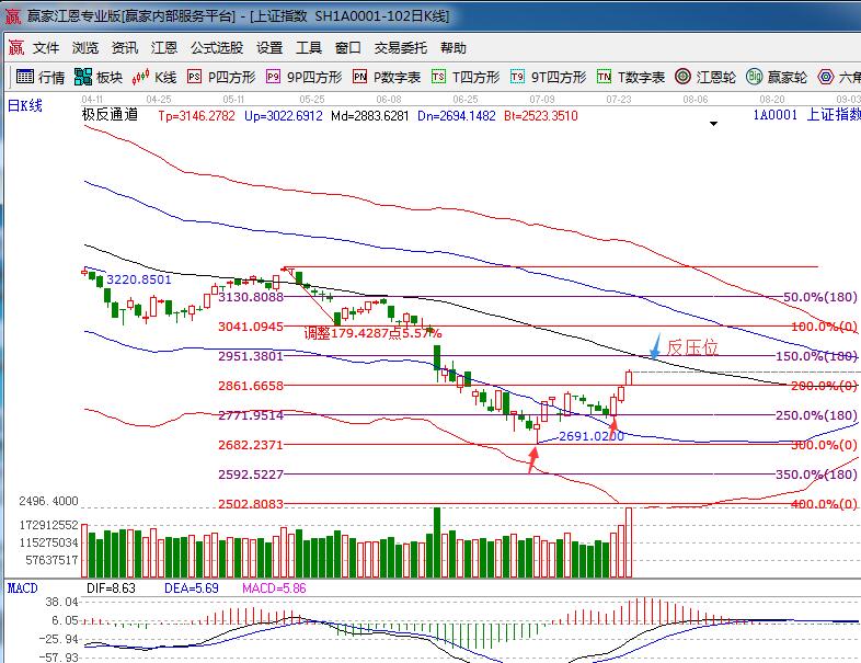 ☆依據(jù)贏家江恩理論系統(tǒng)極反通道提示:滬指日線向黑色生命線2950附近邁進,短周期15、30分鐘在藍色上軌線震蕩走高,帶動60分鐘向上軌線靠近,按周期關(guān)系推導(dǎo),15、60分鐘共振原理,2929藍色上軌線預(yù)計將形成拐點。按規(guī)則15分鐘進入強勢區(qū)具備操作條件,又因日線處于弱勢,短線謹慎看多,中線看空。