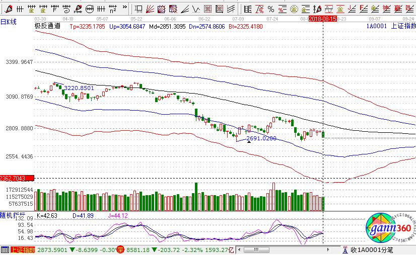 滬指跌2.07%,報2723點(diǎn);深成指跌2.32%,報8581點(diǎn);創(chuàng)業(yè)板指跌2.63%,報1478點(diǎn)。從盤面上看,啤酒、水泥、白酒、草甘膦、在線旅游、互聯(lián)網(wǎng)保險、新疆振興、物流等板塊跌幅居前。滬股通凈流出7.8億,深股通凈流出6.3億。相應(yīng)的極反通道指標(biāo)的支撐壓力提示,如下圖所示: