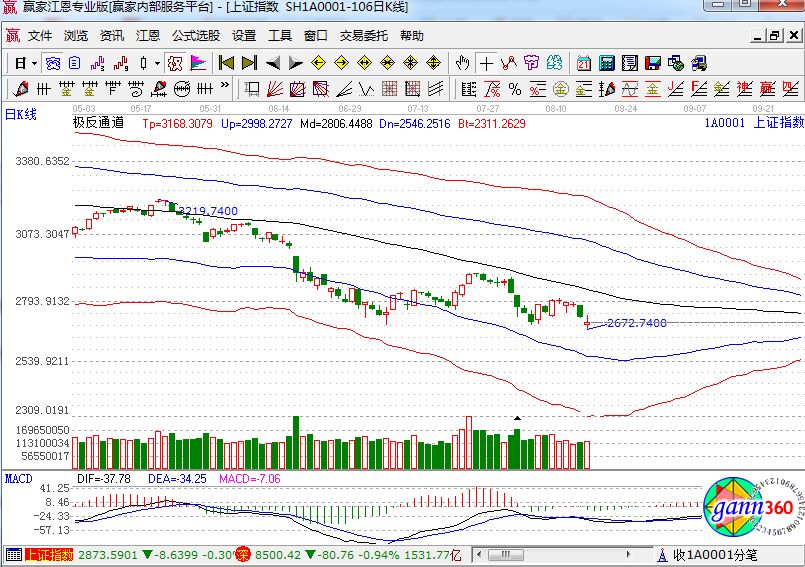 滬指跌0.66%,報2705點;深成指跌0.94%,報8500點;創(chuàng)業(yè)板指跌0.99%,報1463點。從盤面上看,天津自貿(mào)區(qū)、證券、二胎概念、5G、租售同權(quán)等板塊漲幅居前;豬肉、高送轉(zhuǎn)、油改、廣東自貿(mào)區(qū)、海南等板塊跌幅居前。滬股通凈流入15億,深股通凈流入7.7億。相應的極反通道指標的支撐壓力提示,如下圖所示:
