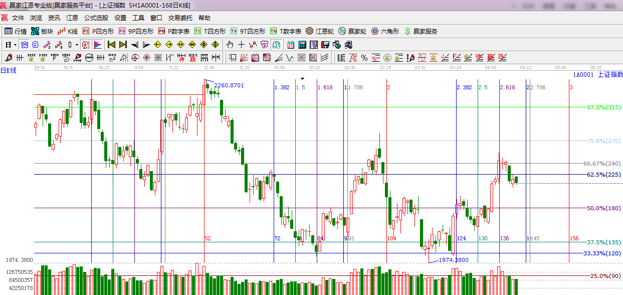 ☆依據(jù)贏家江恩系統(tǒng)黃金時(shí)間周期線提示:下一時(shí)間窗口4月22日,23日。