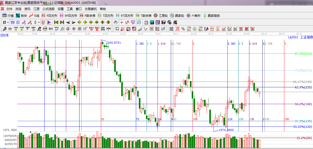☆依據(jù)贏家江恩系統(tǒng)黃金時(shí)間周期線提示:下一時(shí)間窗口4月22日,23日。