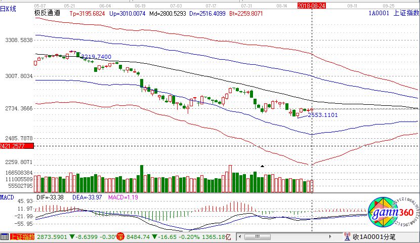 滬指漲0.18%,報2729點;深成指跌0.20%,報8484點;創(chuàng)業(yè)板指跌0.37%,報1450點。從盤面上看,銀行、高送轉、水利、海南、醫(yī)藥商業(yè)、油改等板塊上漲;乙醇燃料、農(nóng)業(yè)服務、國產(chǎn)航母、5G、煤炭、軍工等板塊下跌。滬股通凈流出2.3億,深股通凈流入2.3億。相應的極反通道指標的支撐壓力提示,如下圖所示: