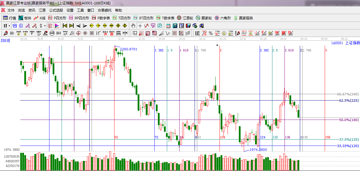 ☆依據(jù)贏家江恩系統(tǒng)黃金時間周期線提示:本周時間窗口4月22日,23日。