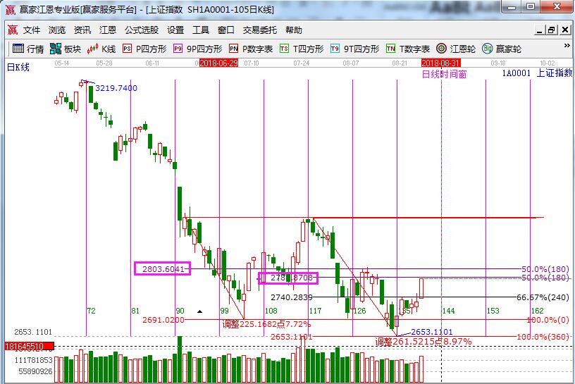 江恩看盤綜述:通過江恩理論系統(tǒng)趨勢、時間、價格工具綜合評判市場三星看多(五星評級標準)。周一滬指強勢反彈直逼2800一線,此位置為日線生命線壓力,30分鐘藍線壓力,波段百分比50%壓力,則短線應重點關注此位置,周二不能強勢突破,短線將大概率回落整理,操作上不要追高,手中個股結合壓力點,獲利兌現(xiàn)為主。短線不破2740仍可精選個股把握交易機會。進入9月,市場會更加明朗,波段底倉安心持有,生命線附近整理后突破走強,將是新的加倉機會。