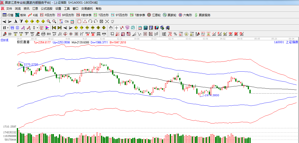 ☆依據(jù)贏家江恩系統(tǒng)極反通道提示:生命線之下,趨勢(shì)弱勢(shì),看空,短期支撐1984附近。