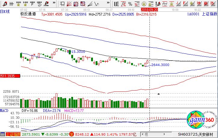 滬指漲1.14%,報(bào)收2730點(diǎn);深成指漲1.41%,報(bào)收8248點(diǎn);創(chuàng)業(yè)板漲1.10%,報(bào)收1392點(diǎn)。從盤面上看,廣東自貿(mào)區(qū)、超級(jí)品牌、頁(yè)巖氣、集成電路、粵港澳大灣區(qū)、房地產(chǎn)、白酒、芯片等板塊上漲。滬股通凈流入7.7億,深股通凈流入1.5億。相應(yīng)的極反通道指標(biāo)的支撐壓力提示,如下圖所示: