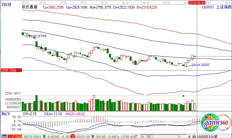 滬指跌0.58%,報(bào)收2781點(diǎn);深成指跌0.66%,報(bào)收8353點(diǎn);創(chuàng)業(yè)板跌0.38%,報(bào)收1405點(diǎn)。從盤(pán)面上看,養(yǎng)殖業(yè)、豬肉、物流、可燃冰、油改、軍工等板塊上漲;機(jī)場(chǎng)航運(yùn)、房地產(chǎn)、租售同權(quán)、深圳國(guó)資改革、銀行、粵港澳大灣區(qū)等板塊跌幅居前。相應(yīng)的極反通道指標(biāo)的支撐壓力提示,如下圖所示: