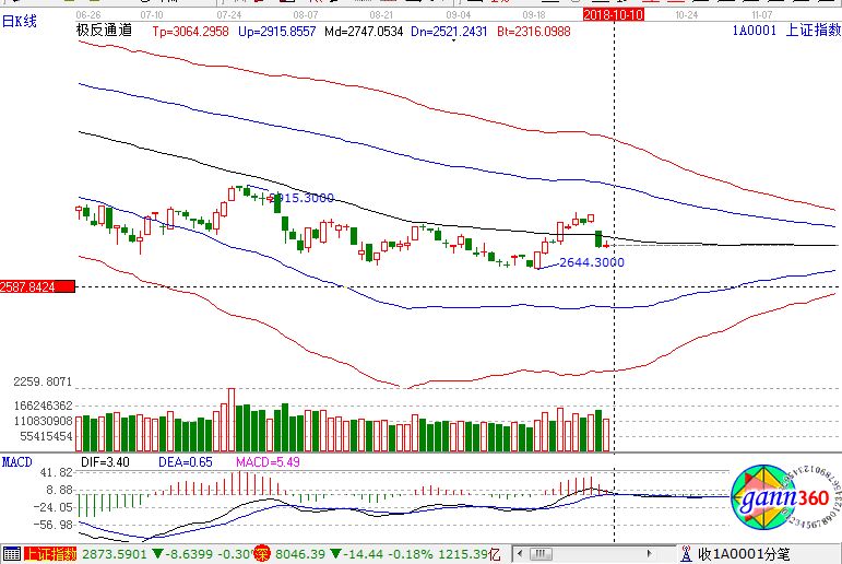 滬指漲0.17%,報(bào)收2721點(diǎn);深成指跌0.18%,報(bào)收8046點(diǎn);創(chuàng)業(yè)板跌0.57%,報(bào)收1345點(diǎn)。從盤(pán)面上看,石油采掘、煤炭、頁(yè)巖氣、次新股、黃金等板塊領(lǐng)漲;機(jī)場(chǎng)航運(yùn)、軍工、集成電路、國(guó)產(chǎn)軟件、醫(yī)藥商業(yè)等板塊領(lǐng)跌。滬股通凈流出21億,深股通凈流出6.7億。相應(yīng)的極反通道指標(biāo)的支撐壓力提示,如下圖所示: