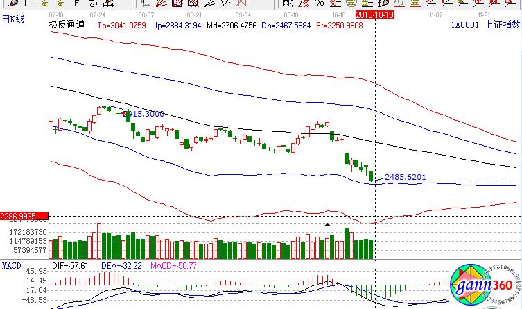 滬指全天再現(xiàn)單邊下挫走勢,股指再度失守2500點(diǎn),個股一片慘綠,逾百只個股跌停,中國石油、中國交建、中國鐵建等一批中字頭權(quán)重股砸盤,市場強(qiáng)勢板塊相繼補(bǔ)跌。滬指跌2.94%,報(bào)收2486點(diǎn);深成指跌2.41%,報(bào)收7187點(diǎn);創(chuàng)業(yè)板跌2.18%,報(bào)收1205點(diǎn)。從盤面上看,海南、油改、黃金、煤炭、高送轉(zhuǎn)、天然氣等板塊領(lǐng)跌。應(yīng)的極反通道指標(biāo)的支撐壓力提示,如下圖所示: