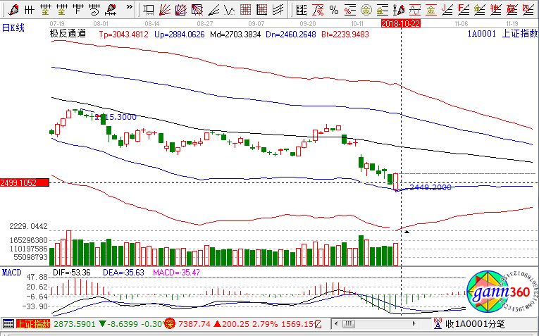 滬指漲2.58%,報(bào)收2550點(diǎn);深成指漲2.79%,報(bào)收7387點(diǎn);創(chuàng)業(yè)板漲3.72%,報(bào)收1249點(diǎn)。滬股通凈流入36億,深股通凈流入9億。應(yīng)的極反通道指標(biāo)的支撐壓力提示,如下圖所示: