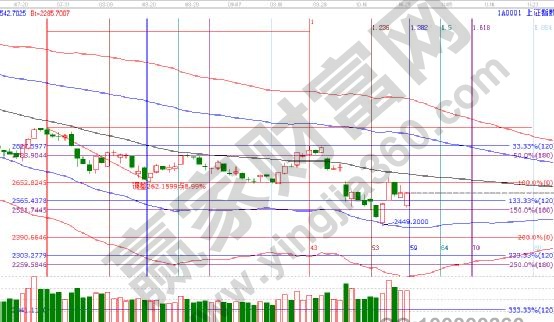 通過(guò)江恩理論系統(tǒng)趨勢(shì)、時(shí)間、價(jià)格工具綜合評(píng)判市場(chǎng)二星看多(五星評(píng)級(jí)標(biāo)準(zhǔn))。周四市場(chǎng)低開(kāi)在15分鐘藍(lán)線關(guān)鍵位置后止跌反彈,截止收盤(pán)反彈至生命線壓力2610附近,此位置同時(shí)也是60分鐘生命線位置、也是江恩四方圖中的270度位置,則周五應(yīng)重點(diǎn)關(guān)注2610一線,強(qiáng)勢(shì)突破則繼續(xù)看高2680一線,反之,仍將回落洗盤(pán)。操作上,日線股指仍處于生命線下弱勢(shì)區(qū),整體倉(cāng)位嚴(yán)格控制在3-5成,激進(jìn)客做好風(fēng)控的前提下,低吸博弈短線機(jī)會(huì)。10月為月線重要時(shí)間點(diǎn),最后幾個(gè)交易日,市場(chǎng)波動(dòng)劇烈是價(jià)格追隨時(shí)間的一種表現(xiàn),中長(zhǎng)期趨勢(shì)能否自此揚(yáng)帆,靜待月線收盤(pán)。