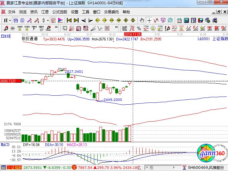 滬指漲2.70%,報(bào)收2676點(diǎn);深成指漲3.96%,報(bào)收7867點(diǎn);創(chuàng)業(yè)板漲4.82%,報(bào)收1348點(diǎn)。從盤面上看,機(jī)場航運(yùn)、白酒、化工新材料、知識產(chǎn)權(quán)保護(hù)、健康中國、集成電路等板塊領(lǐng)漲。滬股通凈流入113億,深股通凈流入65億。相應(yīng)的極反通道指標(biāo)的支撐壓力提示,如下圖所示: